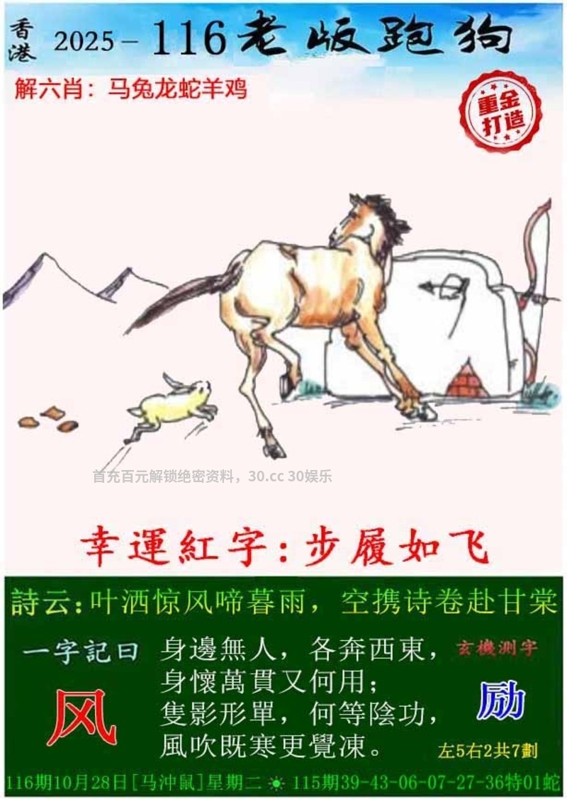 | 116期:吉凶两肖@凶丑+鸡龙@开:马24错 |